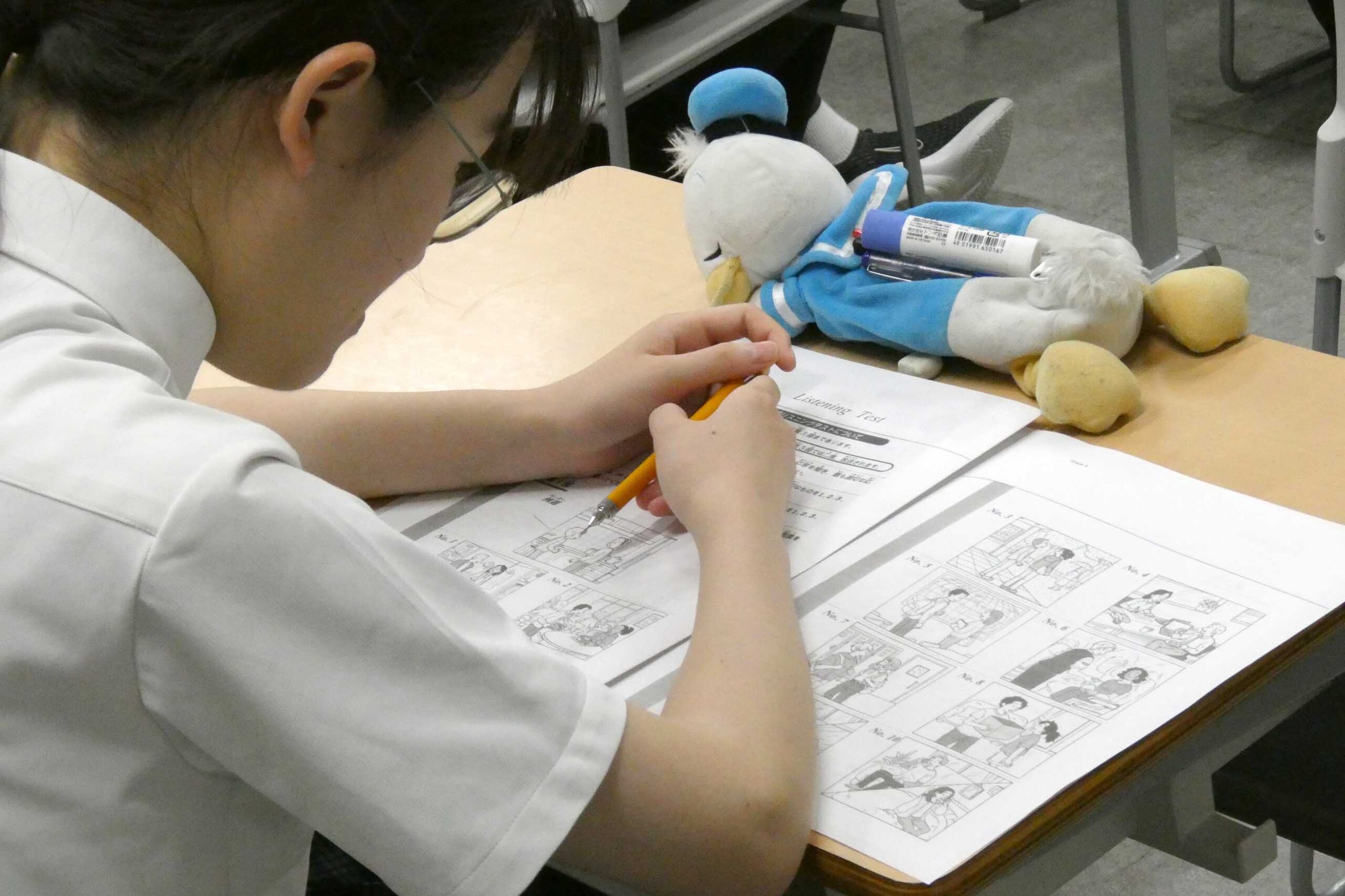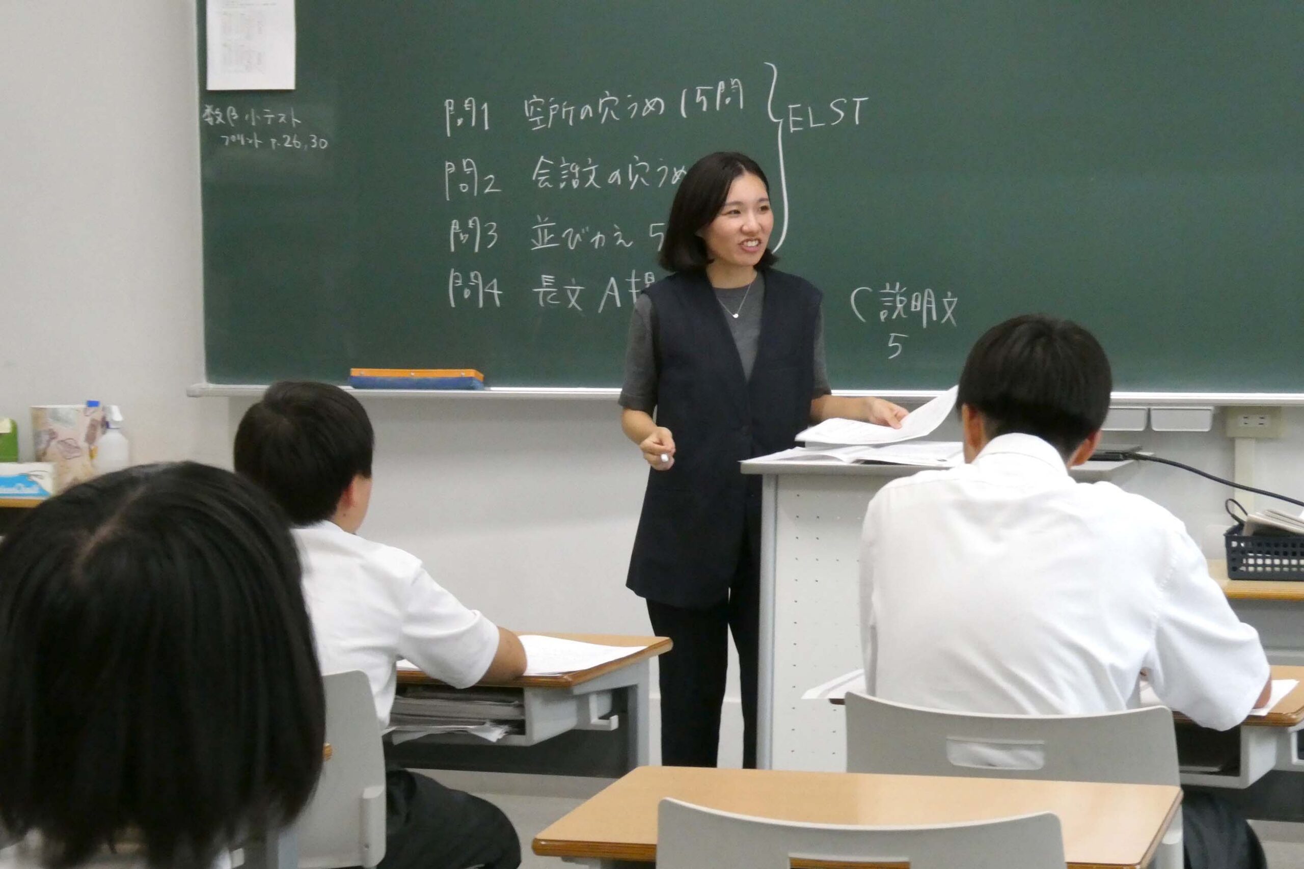 本校では放課後の時間を活用し、実用英語技能検定(英検)の対策講座を行っています。受験を希望する級ごとに講座が分かれており、英語科の教員が丁寧に問題を解説。生徒たちは解き方のコツを学びながら、集中して取り組んでいました。近年、大学入試では英語資格・検定を評価に取り入れる学校が増えており、本校でもその流れに対応すべく、積極的に英検対策に力を入れています。