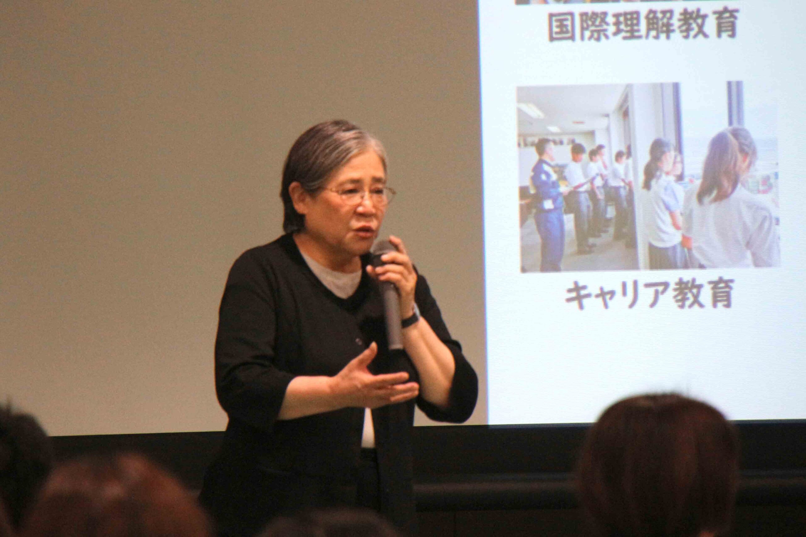 「学校説明会」では、本校理事長より教育目標や少人数制教育、須磨学園との連携など、本校の特色について紹介がありました。