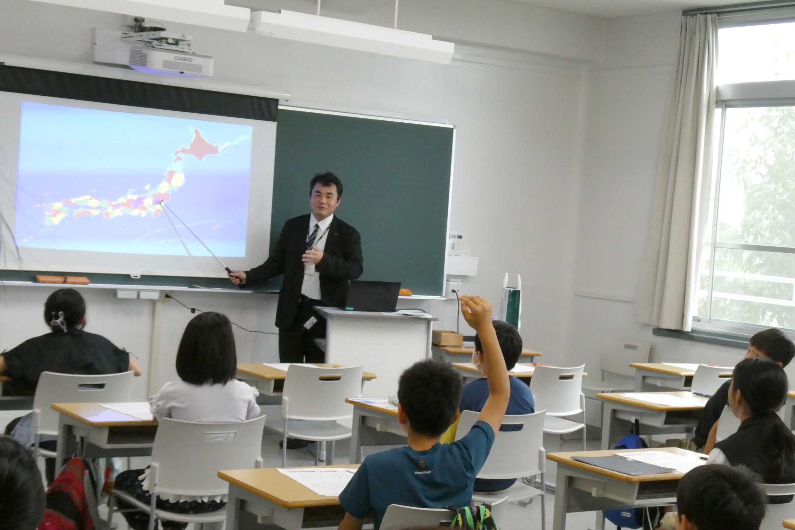 算数体験では「四色問題」に挑戦しました。参加者は教員の質問に積極的に手を挙げて授業に参加し、問題を考える楽しさを体感できる時間となりました。