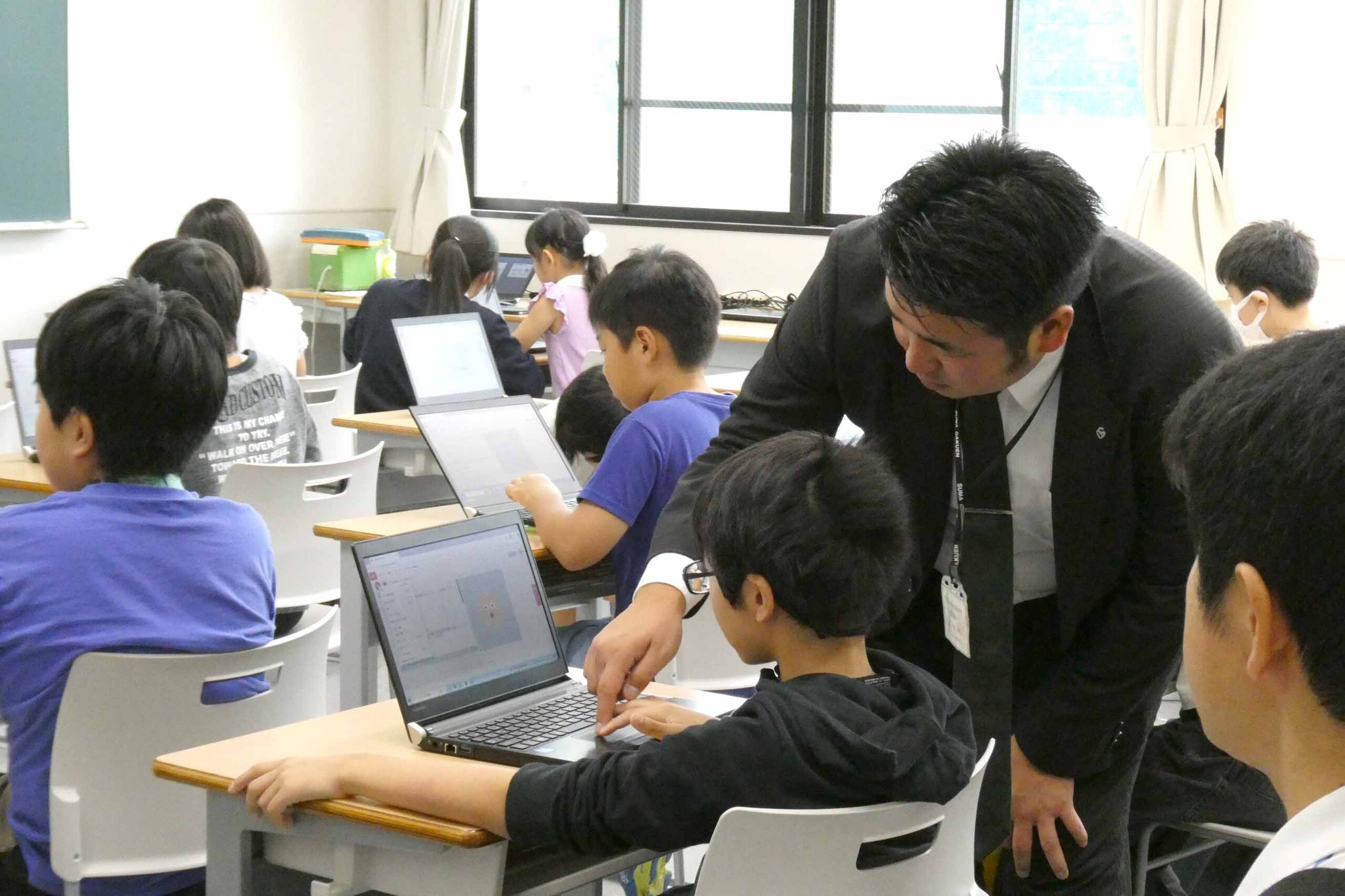 プログラミング体験では、パソコンを使って課題に挑戦しました。パソコンを使い慣れていない参加者も、教員や生徒のサポートのもと、安心して楽しみながら参加していました。