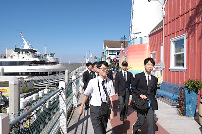 ロサンゼルス到着後、最初の訪問地は全米有数のヨットハーバー、マリーナ・デル・レイ。潮風が疲れを癒し、オットセイの泳ぐ姿に歓声が上がるなど、爽やかな時間となりました。