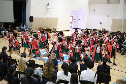 クラスの授業後、体育館で全体会を実施。夙川生のプレゼンではクイズも盛り上がり、ダンスやソーラン節のパフォーマンスも披露。練習の成果を発揮し、会場全体が一体となりました。