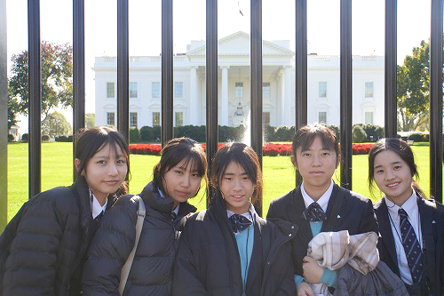 次に訪れたのはホワイトハウスです。テレビで見た建物を間近に見学し、生徒たちは興奮気味。短時間の訪問でしたが、離れる際は名残惜しそうでした。
