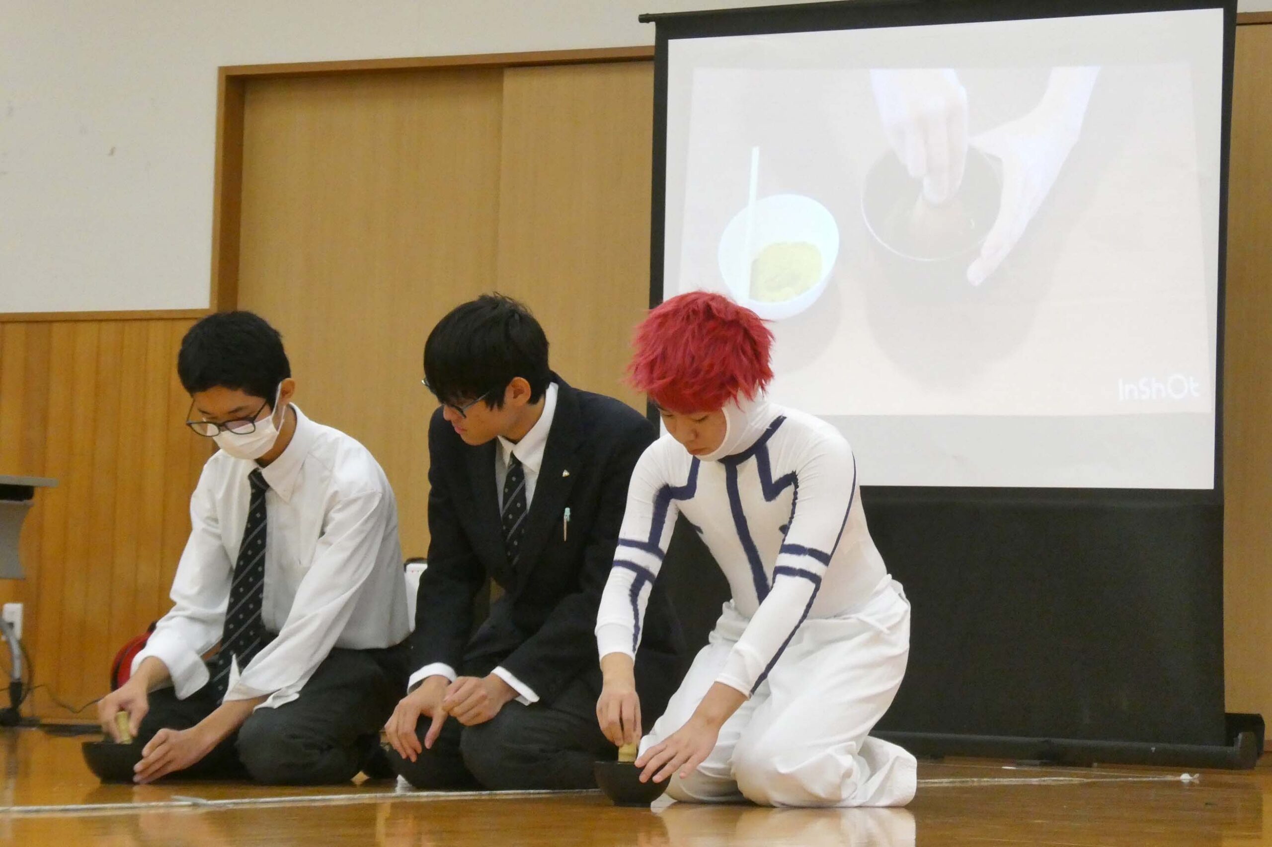 S2学年のヨーロッパ研修学校交流会では、日本の抹茶やアニメをテーマに、英語でプレゼンテーションを実施。寸劇を交えた発表の練習にも取り組んでいました。