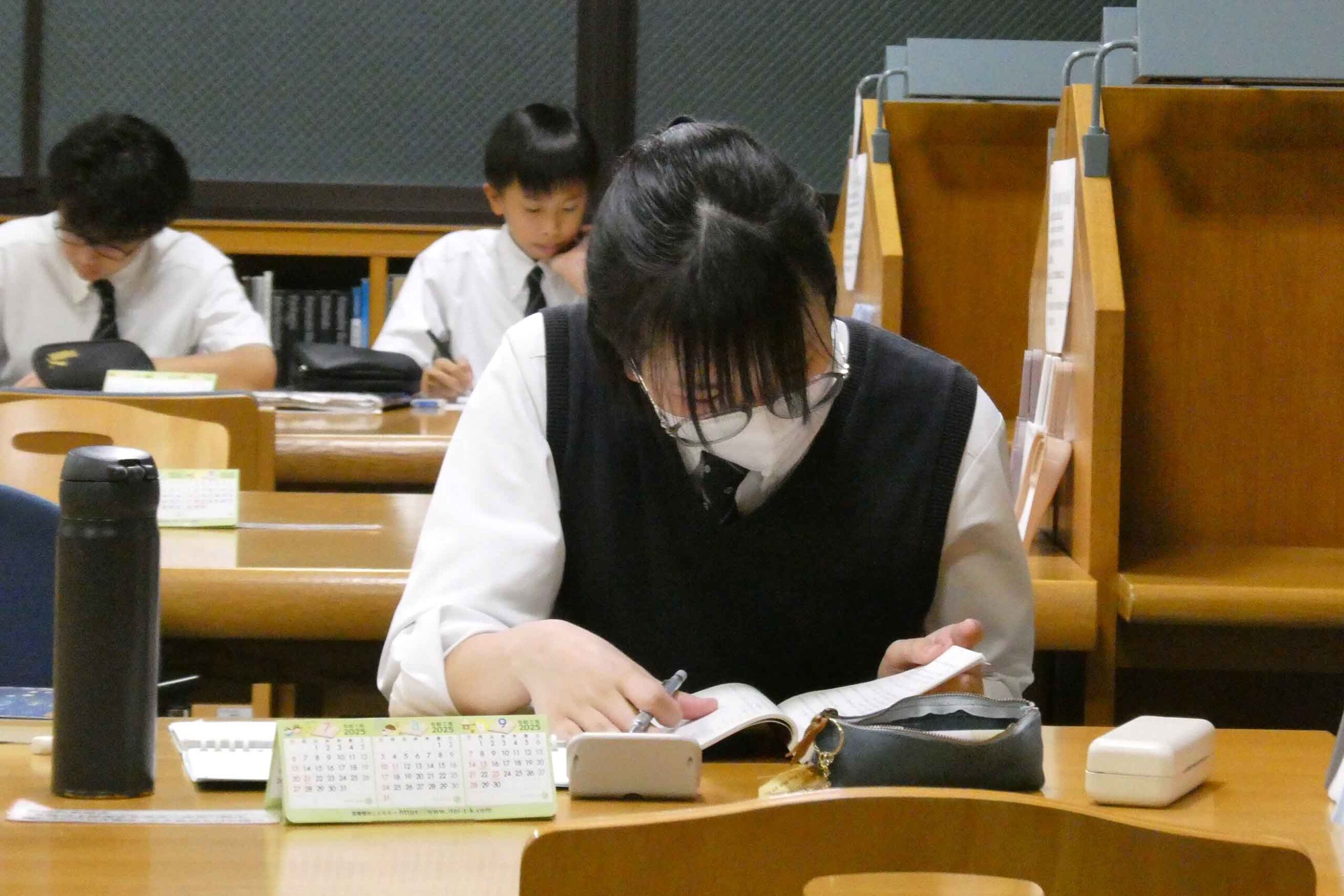 放課後は教室に加えて図書室も開放され、生徒たちは自分に合う環境で集中して学習しています。課題や問題集に取り組みながら、試験へ向けて着実に準備を進めていました。