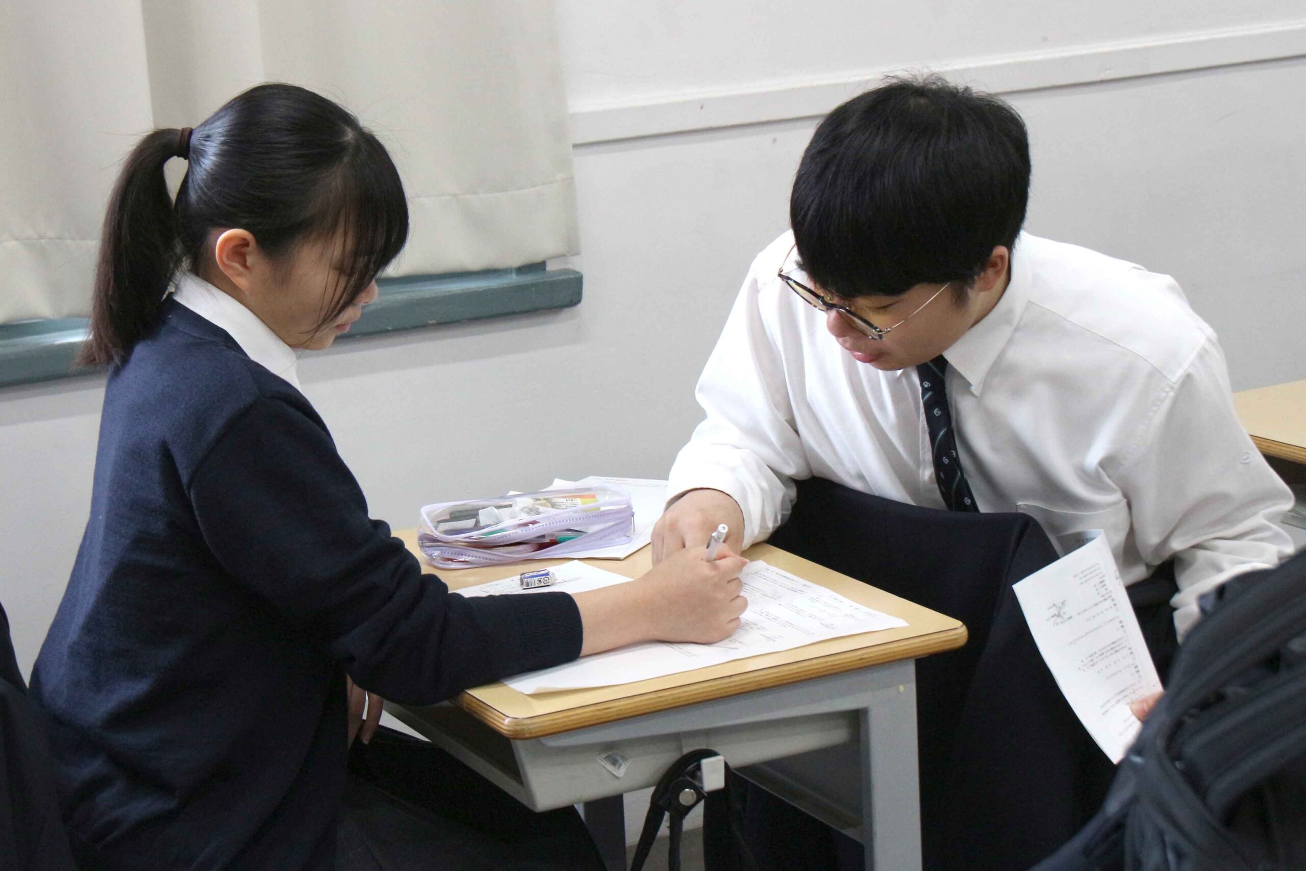 朝や休み時間には、教室でテスト範囲を確認したり、友達同士で問題を出し合ったりする姿が見られました。互いに解説し合いながら、最後の仕上げに取り組んでいました。