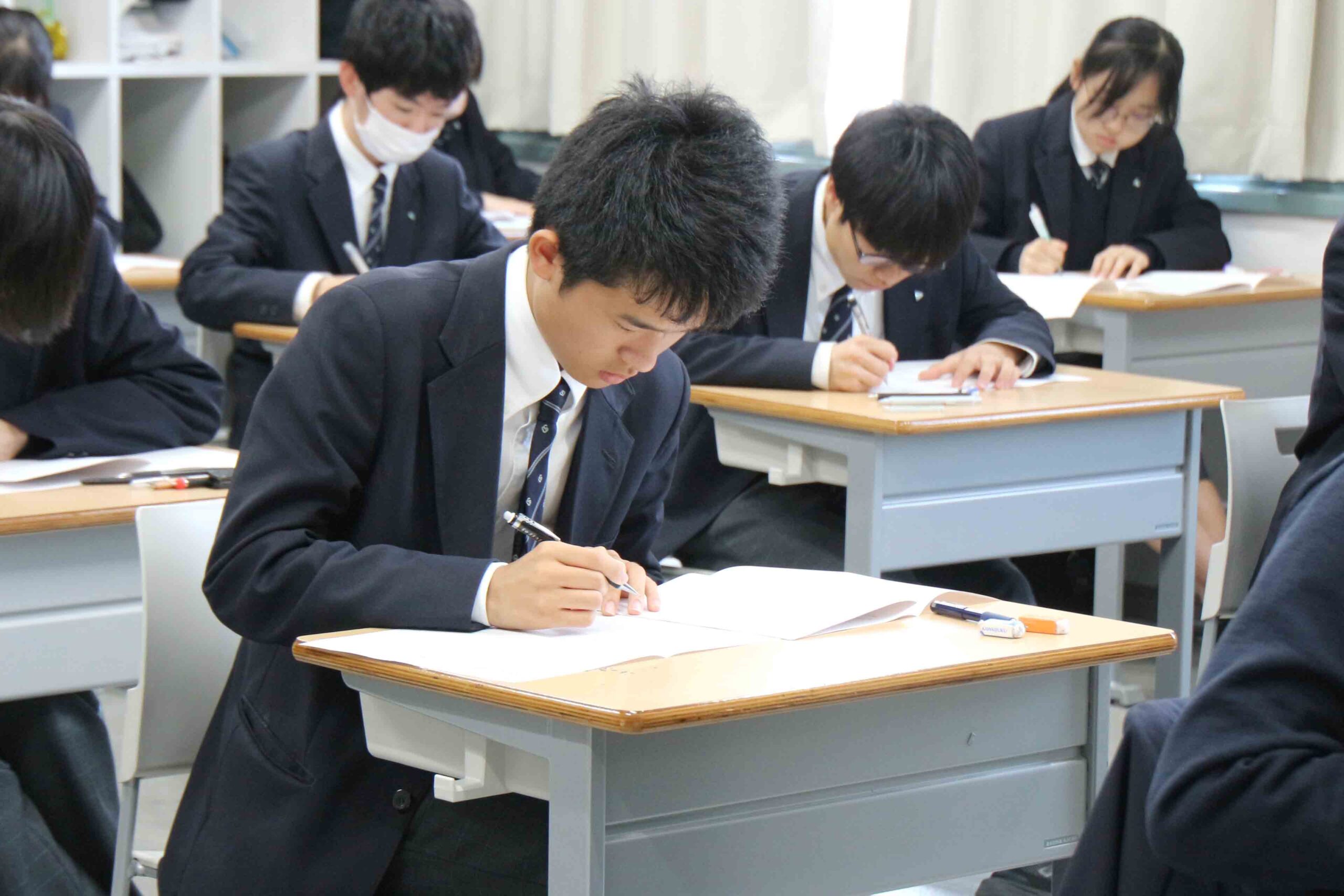 チャイムと同時に試験が開始。生徒たちは問題用紙を受け取り、集中した表情で答案に向かい、これまで積み重ねてきた学習の成果を一問一問に注いでいました。
