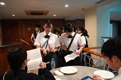 翌朝、生徒たちは朝食会場で健康チェックとパスポート、鍵の確認を受けます。毎朝の体調管理を徹底し、一人ひとりが安心して過ごせる研修体制を整えています。