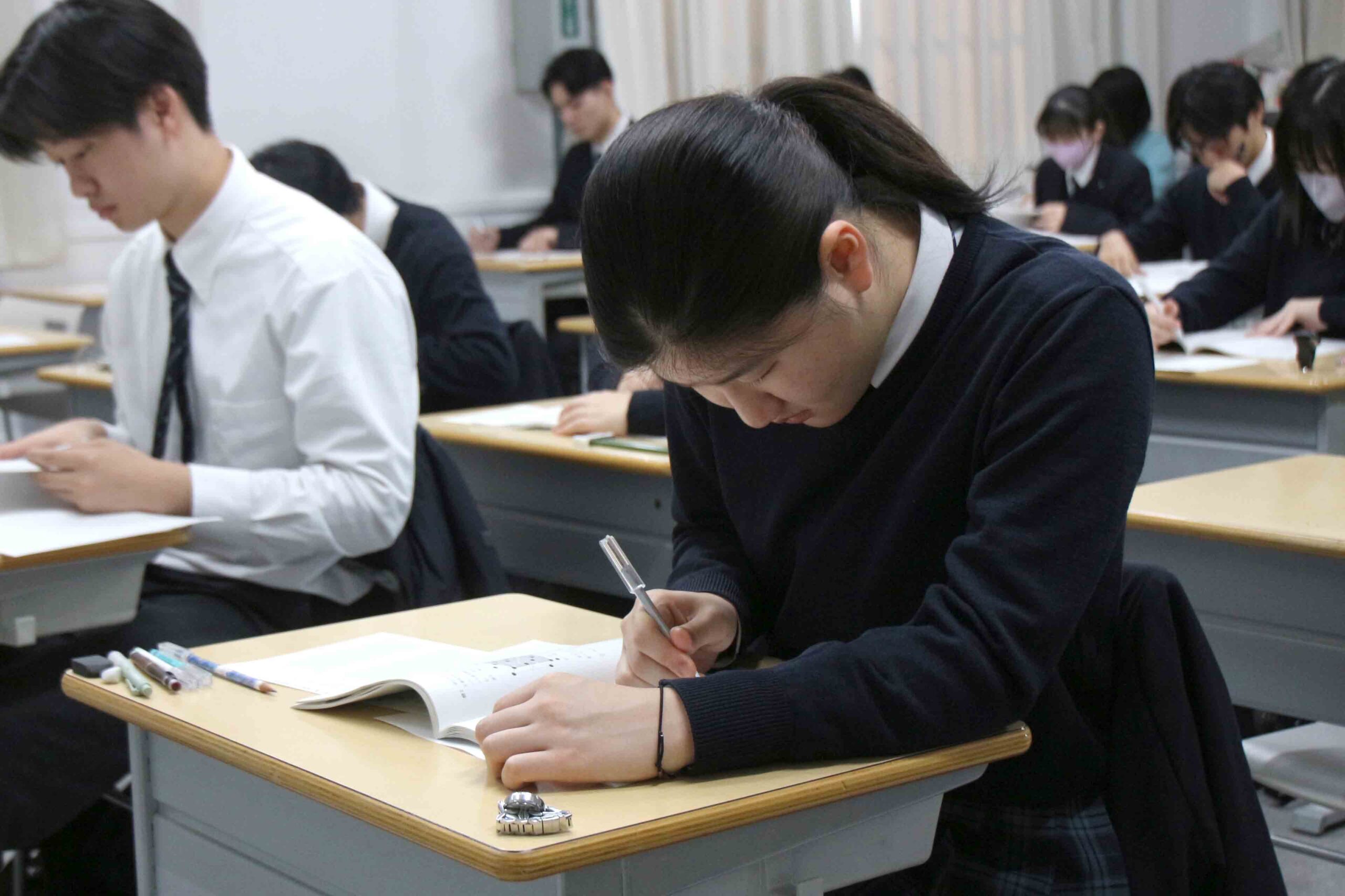 12月18日(木)、19日(金)の2日間、K3/V2(高3)学年で「プレ共通テスト」を実施しました。本番まで残り約1ヶ月。共通テスト当日と同様に、2日間に分けて行いました。本番と同じ時間割・教科順で演習に取り組み、実戦さながらの雰囲気を体感します。本番で実力を出し切るため、当日の流れをしっかり体に染み込ませる時間となりまし