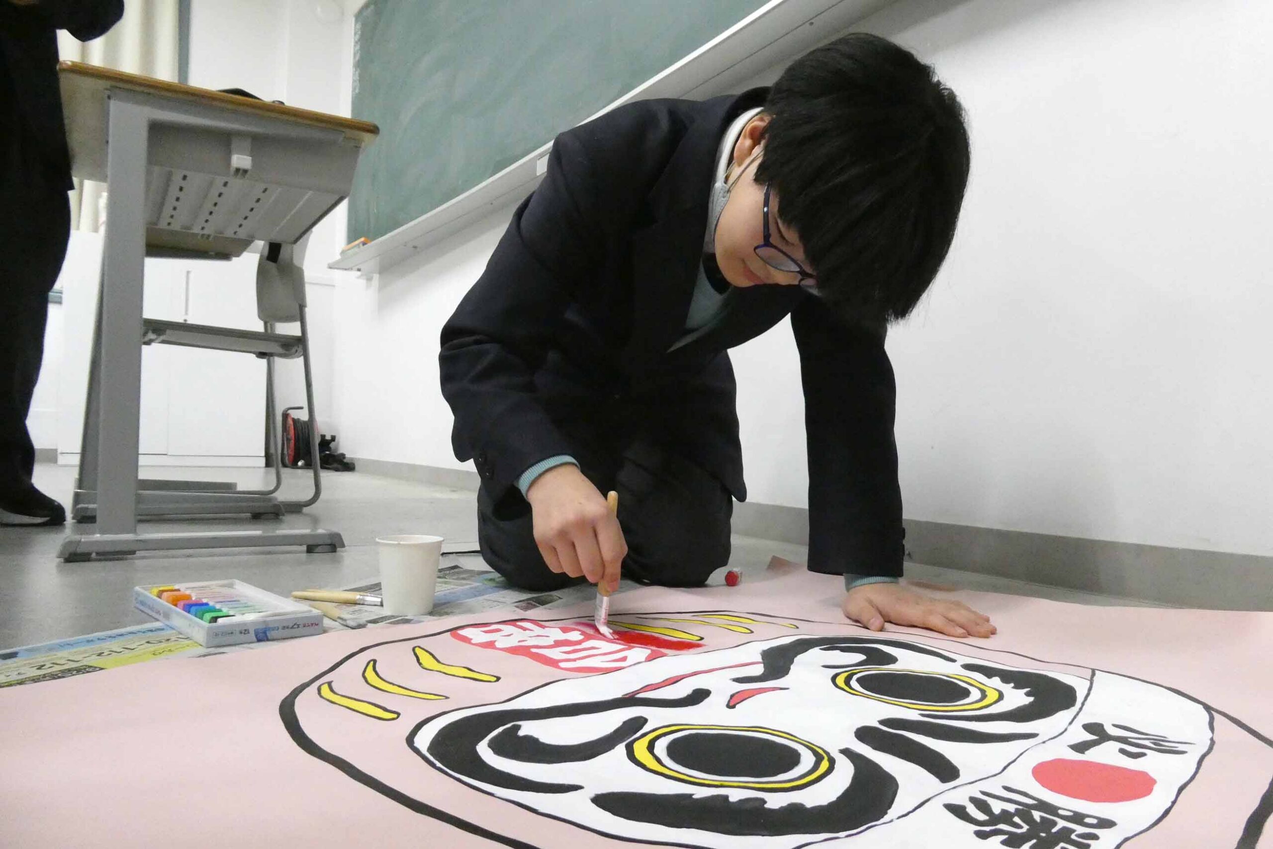 J1(中1)の教室では、今週末の中学受験に挑む受験生へ向けた「応援ポスター」を制作していました。合格への願いを込めて、一色一色ていねいに塗り進めます。