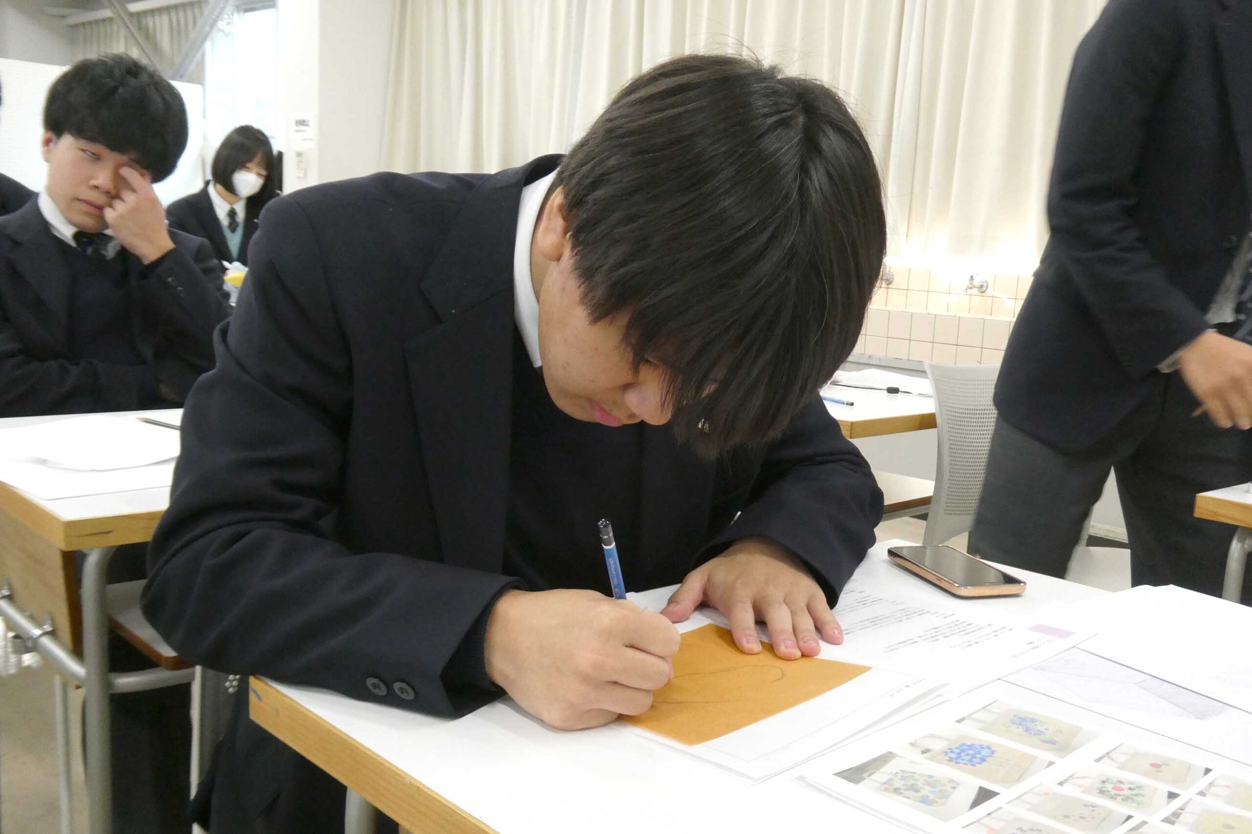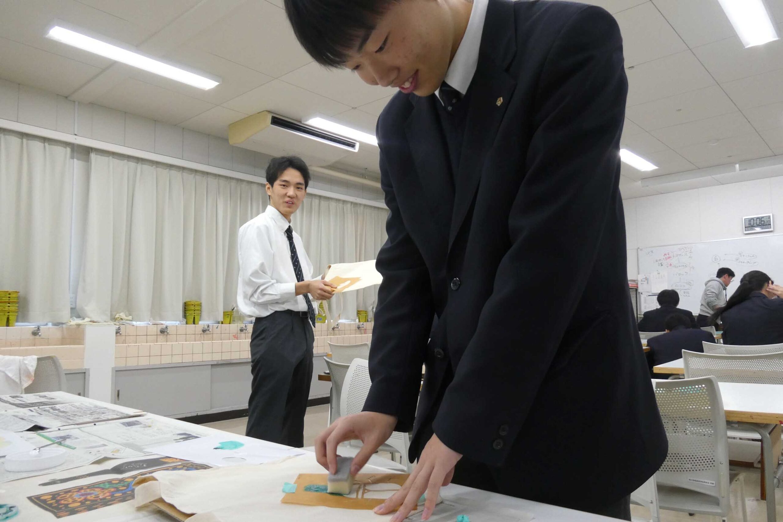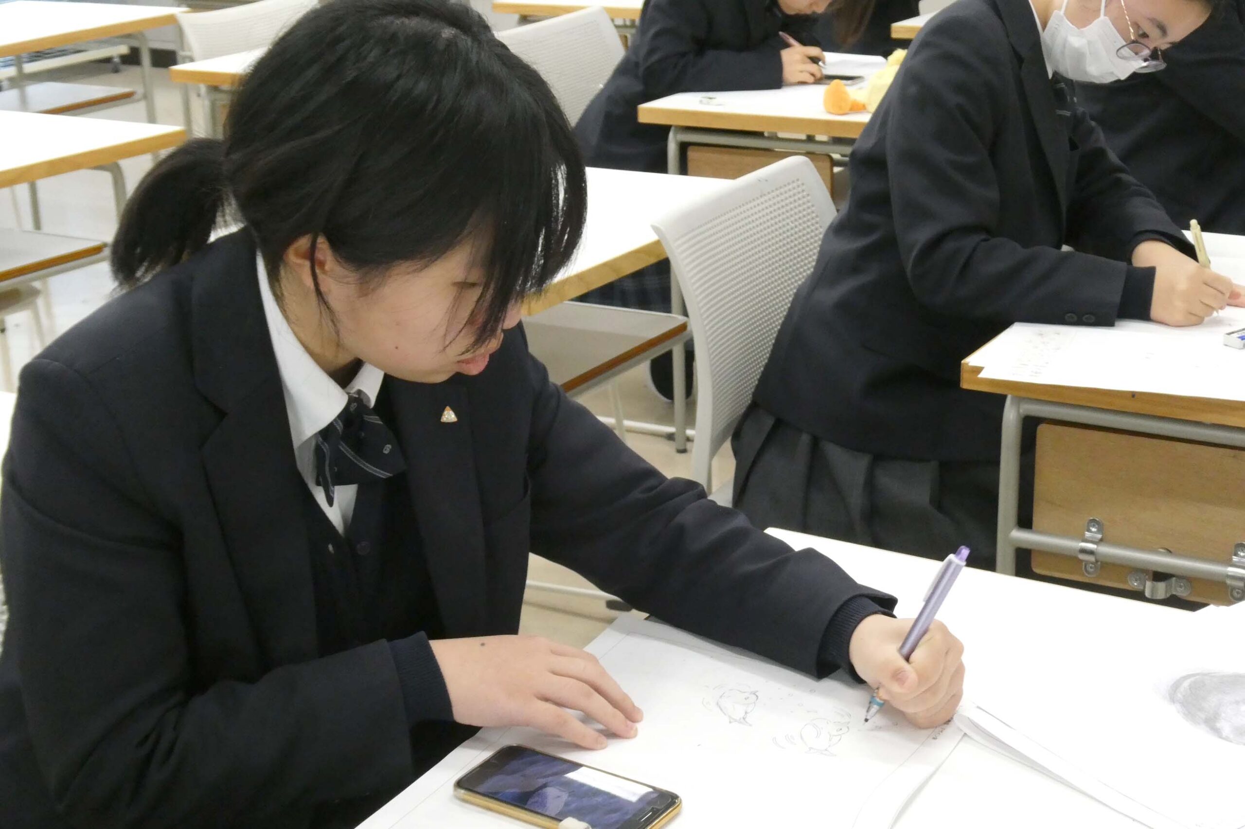 まずはアイデア出しからスタート。犬や小鳥など好きな動物を選ぶ生徒もいれば、文字や模様をデザインする生徒もおり、自由な発想で様々なアイデアが生まれていきます。