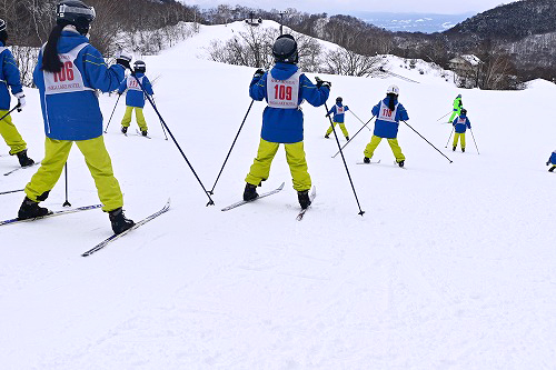 スキー板では難しい上り坂も進むことができ、初挑戦ながら上達を評価される生徒もいました。転ぶ場面もありましたが、平坦な場所で笑顔が見られました。