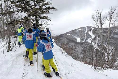 J1(中1)学年はスノーシューで雪上散策へ。標高の高い場所まで登り、志賀高原の景色を楽しみながら、ガイドから冬の生き物や植物の話を聞きました。