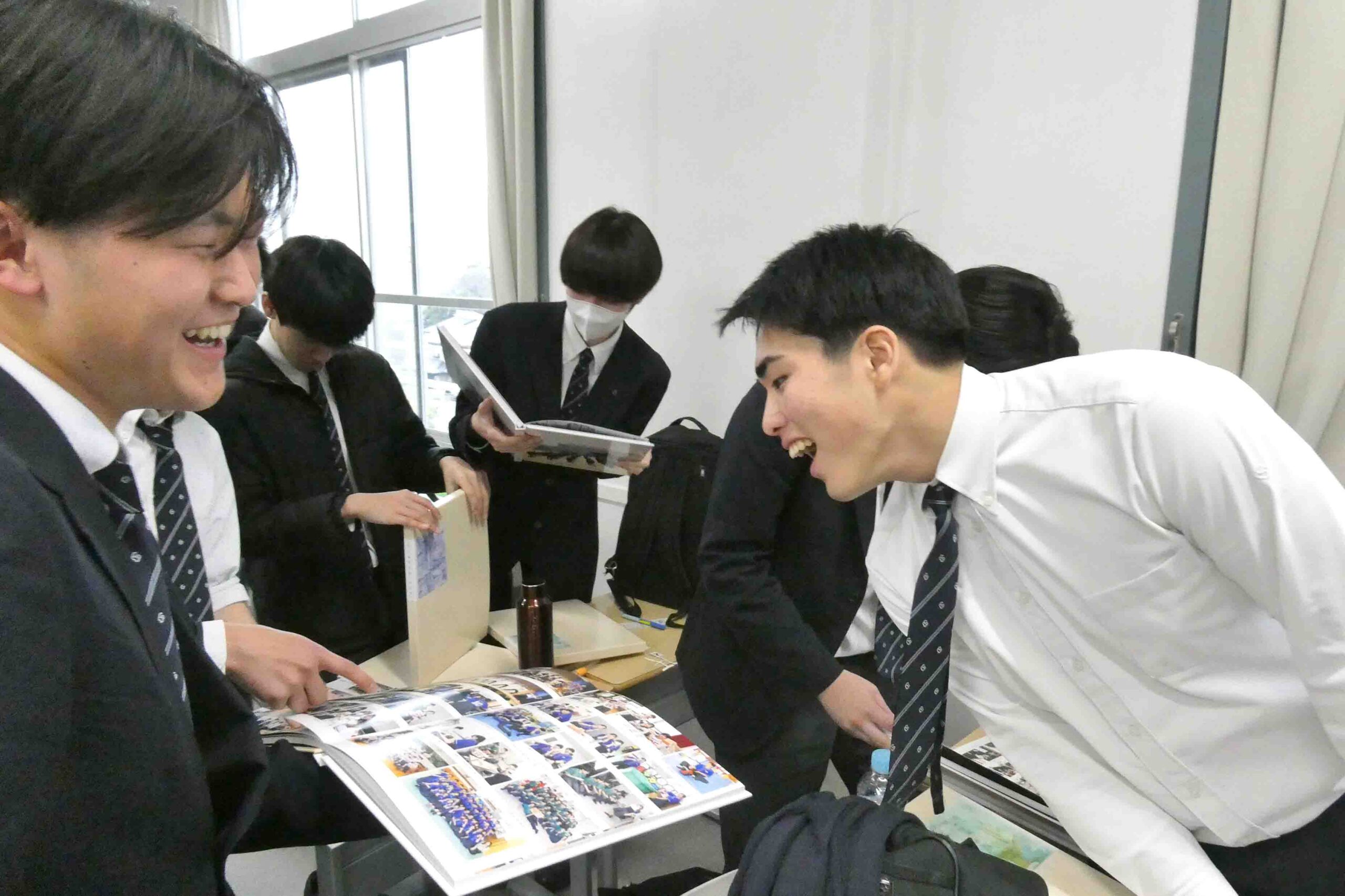 ホームルームで卒業アルバムを配付しました。手にした瞬間から笑顔が広がり、懐かしい写真を見ながら思い出話に花が咲きました。