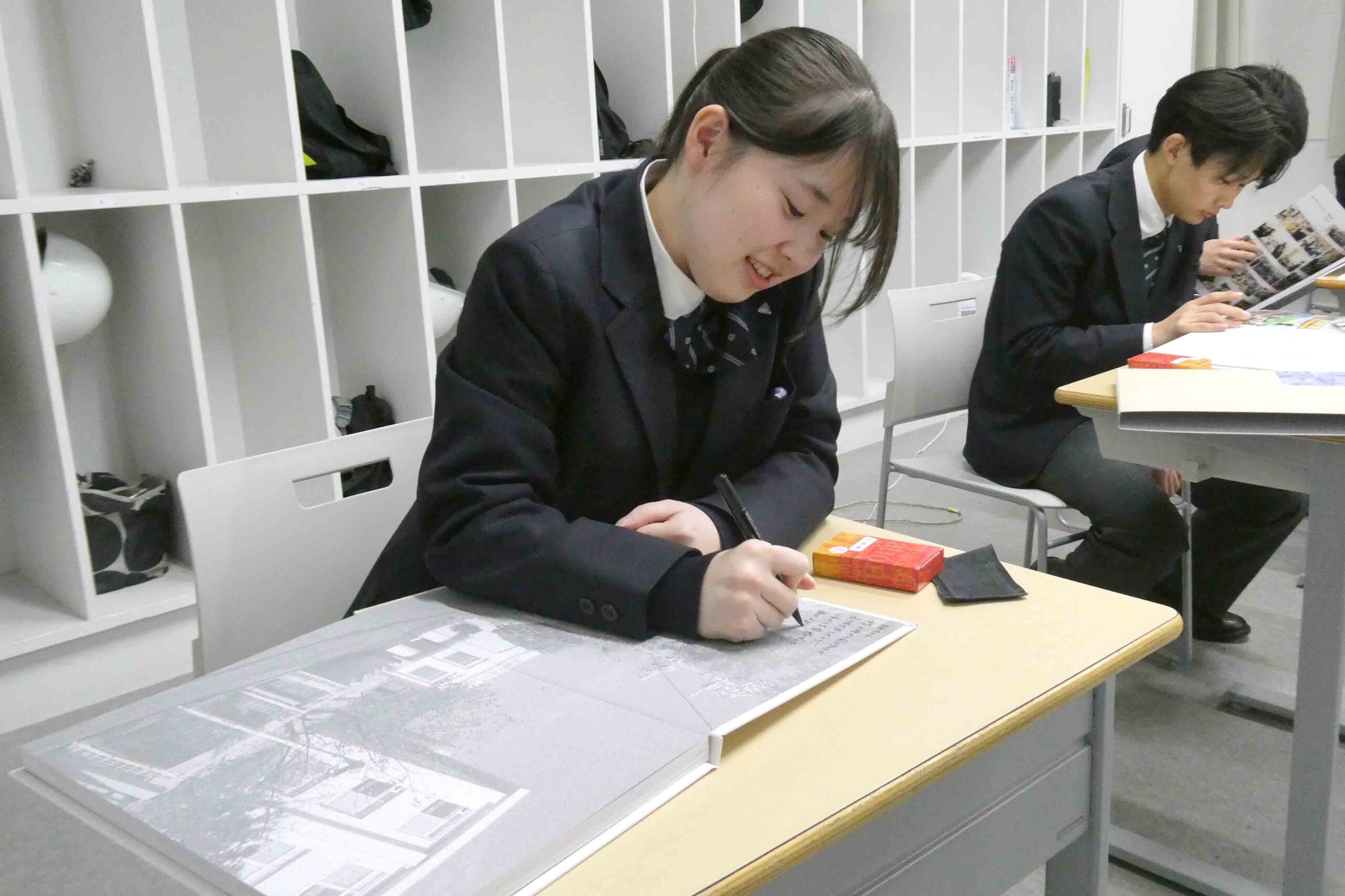 3年間・6年間を共に歩んだ仲間とメッセージを交換する生徒も。感謝やエールを書き込み、後輩や教職員に書いてもらう姿も見られました。