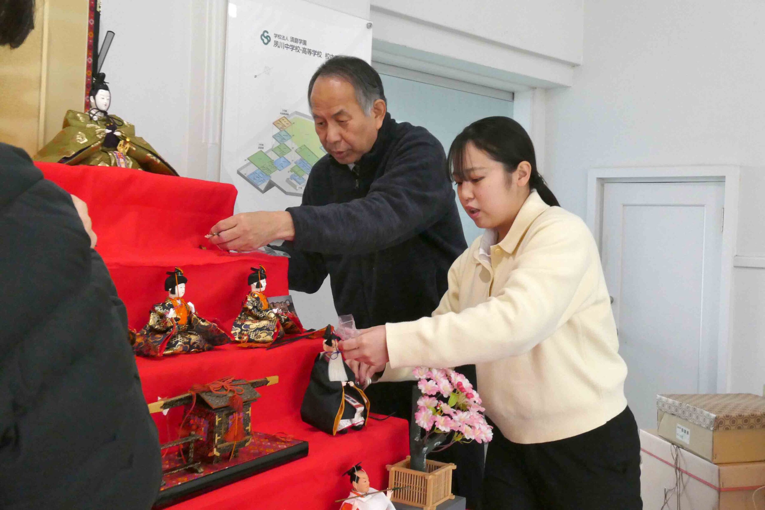 本日はひな祭り。校内には先日から立派なひな人形が飾られ、足を止めて見入る生徒の姿も多く見られます。華やかな雰囲気に包まれ、学校にもひと足早い春が訪れたようです。食堂ではひな祭りの特別メニューが登場し、笑顔あふれる昼休みに。季節の行事を通して、日本の伝統と春の訪れを感じる一日となりました。