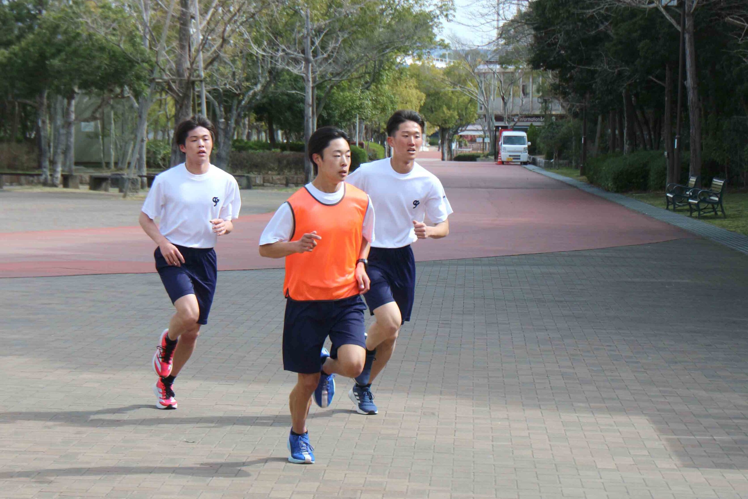 続いて男子のレース。男子は公園内のコースを3周、計9kmに挑みました。仲間の声援を力に変えながら、それぞれが最後まで走り抜きました。