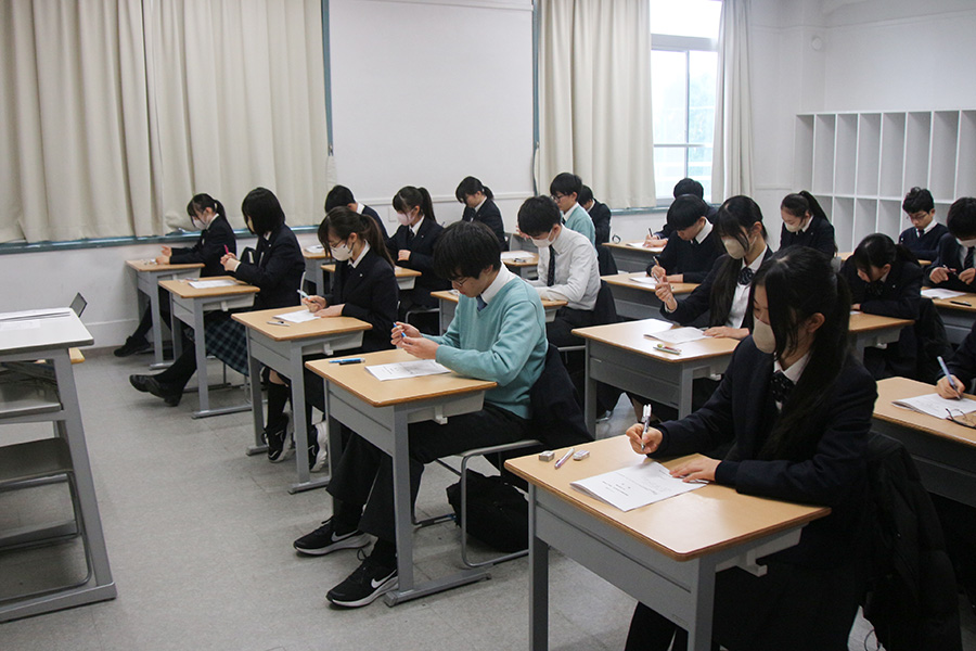 3月25日(火)、高校後期入試と同日に、J2(中学2年)生が「トライアル」と称し、本校の高校入試問題に挑戦しました。本校では、中学校の学習課程を2年間で修了するカリキュラムを活かし、これまでの学びの定着度を確認する機会として実施しています。
