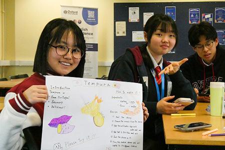 10日目午前の授業テーマは「伝える」。生徒たちは自分たちで決めた料理のレシピを英語でプレゼンしました。生徒からは、「日本の食べ物を知らない先生に対して、イメージを具体的に説明することの難しさを感じた」といった声が聞かれました。