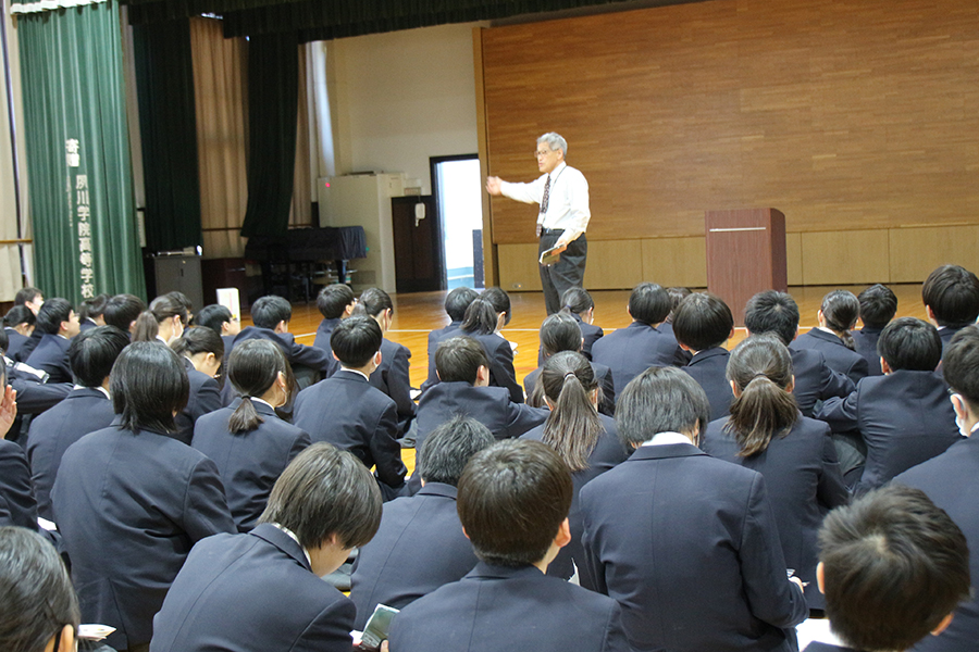 K1/S2(高1)学年では学年集会を実施しました。各教科担当から学習に関する説明があり、新年度に取り組むべき課題や目標が共有されました。生徒たちは真剣な表情で話に耳を傾けていました。