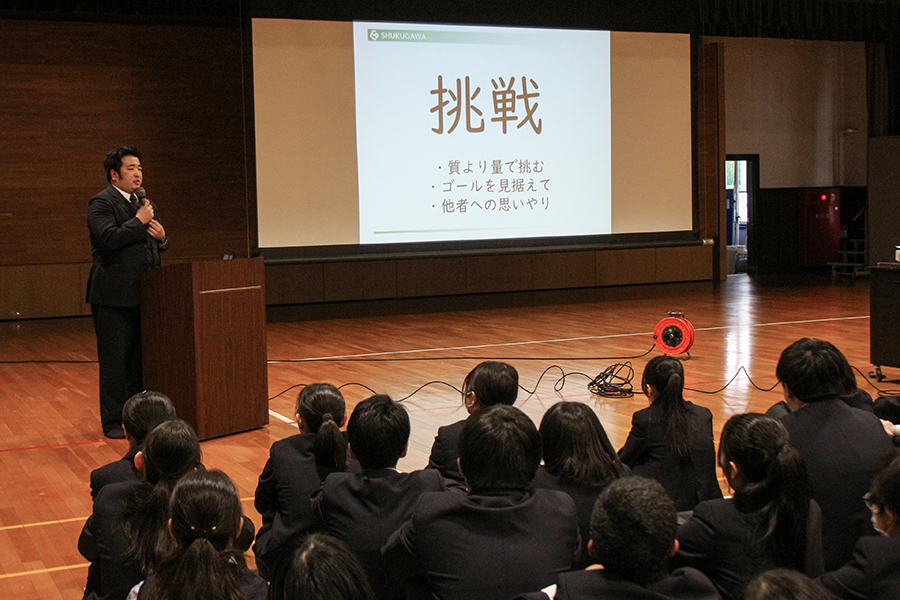 生徒指導部長より各学年に向けて、学校生活を送る上での約束ごとの確認がありました。一年間を充実したものとするために、大切にしてほしい内容です。