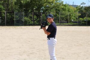 ランニングの後キャッチボールをして肩を慣らしてる様子です